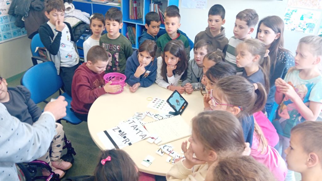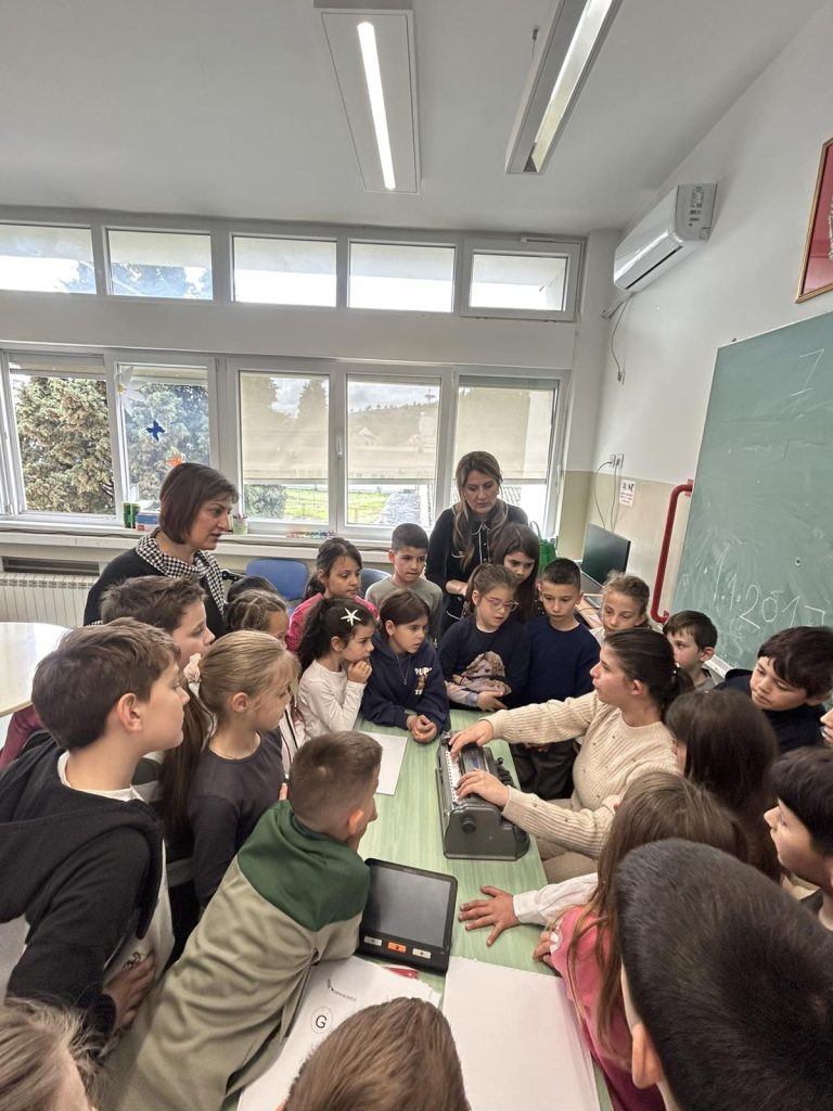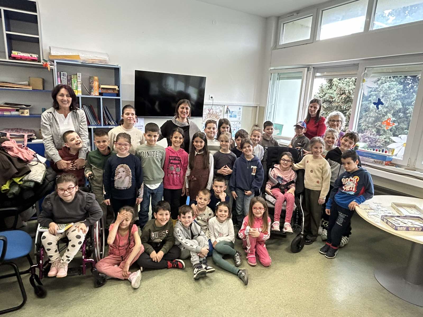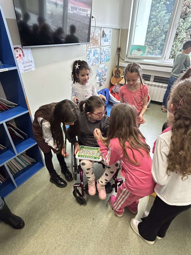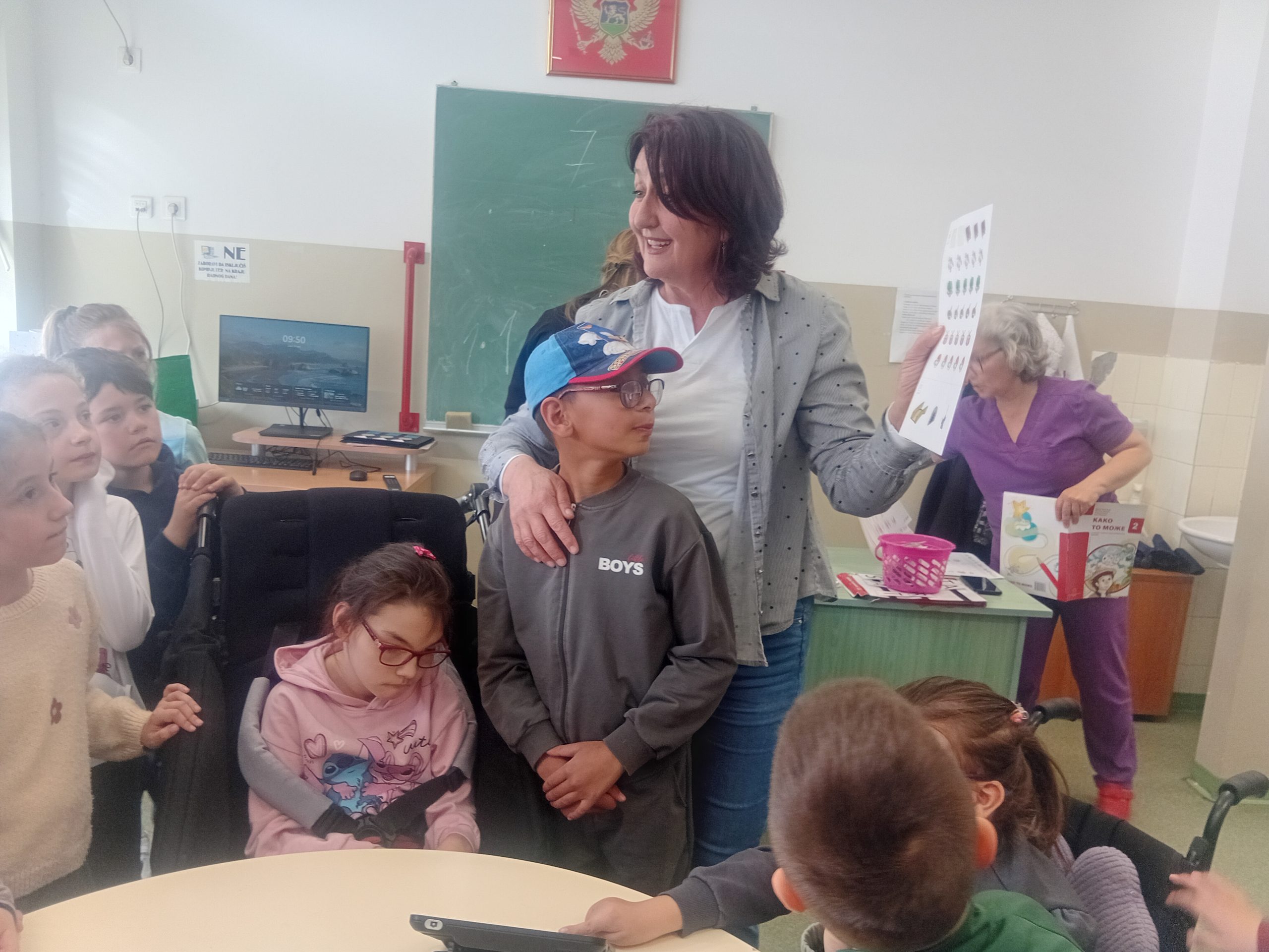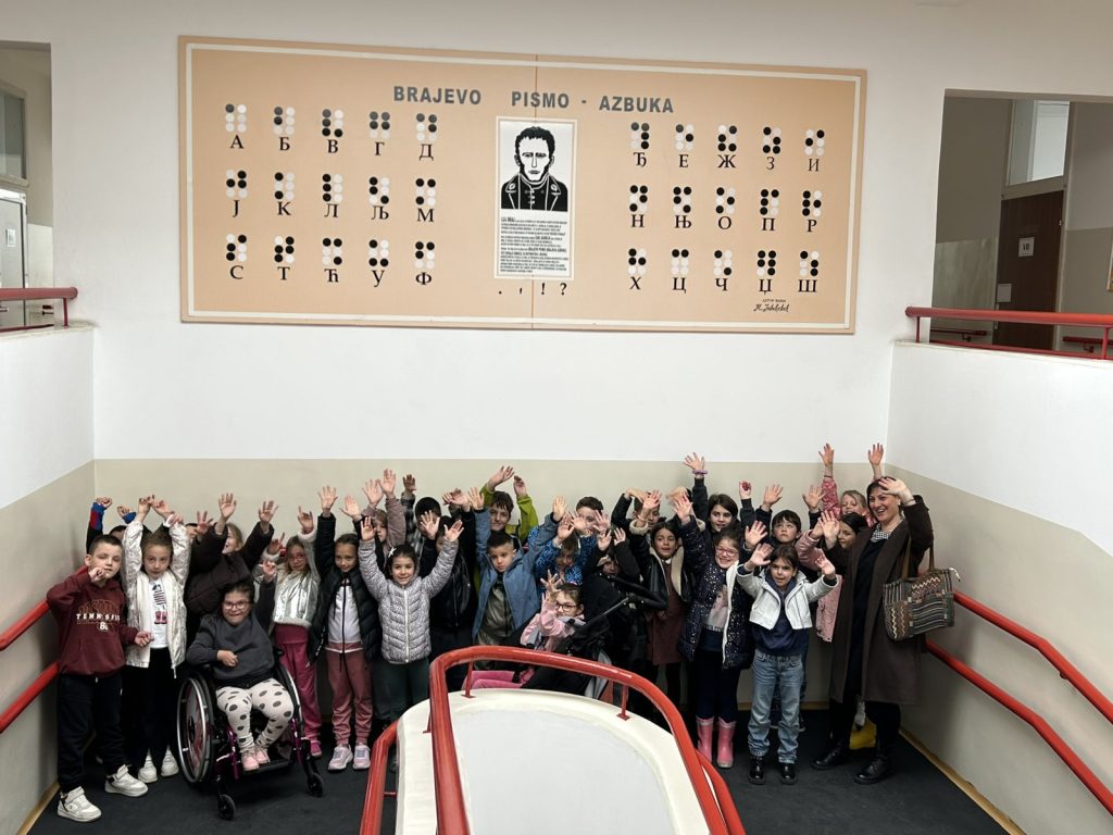 U petak, 27. marta, učenici odjeljenja II – 4 posjetili su Resursni centar za djecu i mlade „Podgorica“. Divno druženje započelo je ljubaznim dočekom učenika i zaposlenih na samom ulazu u Centar, a zatim se nastavilo u učionici. Saznali su na koji način uče djeca sa oštećenjem vida. Zajedno sa drugarima Ahmedinom, Ognjenom, Leom i Jovanom čitali su i pisali pomoću lupe, vidjeli kako se koriste čičak traka i kartice sa slovima, učili o geometrijskim figurama. Borjana, učenica srednje škole, pokazala im je šta je Brajeva mašina, kako se na njoj kuca i kako se čita tekst napisan Brajevim pismom. Učenici II – 4 imali su priliku da i sami nešto otkucaju, a zatim pročitaju pomoću prstića. Nakon toga su obišli i druge prostorije, a posebnu pažnju im je privukla biblioteka koja sadrži knjige malo drugačije od onih u njihovoj školskoj biblioteci.