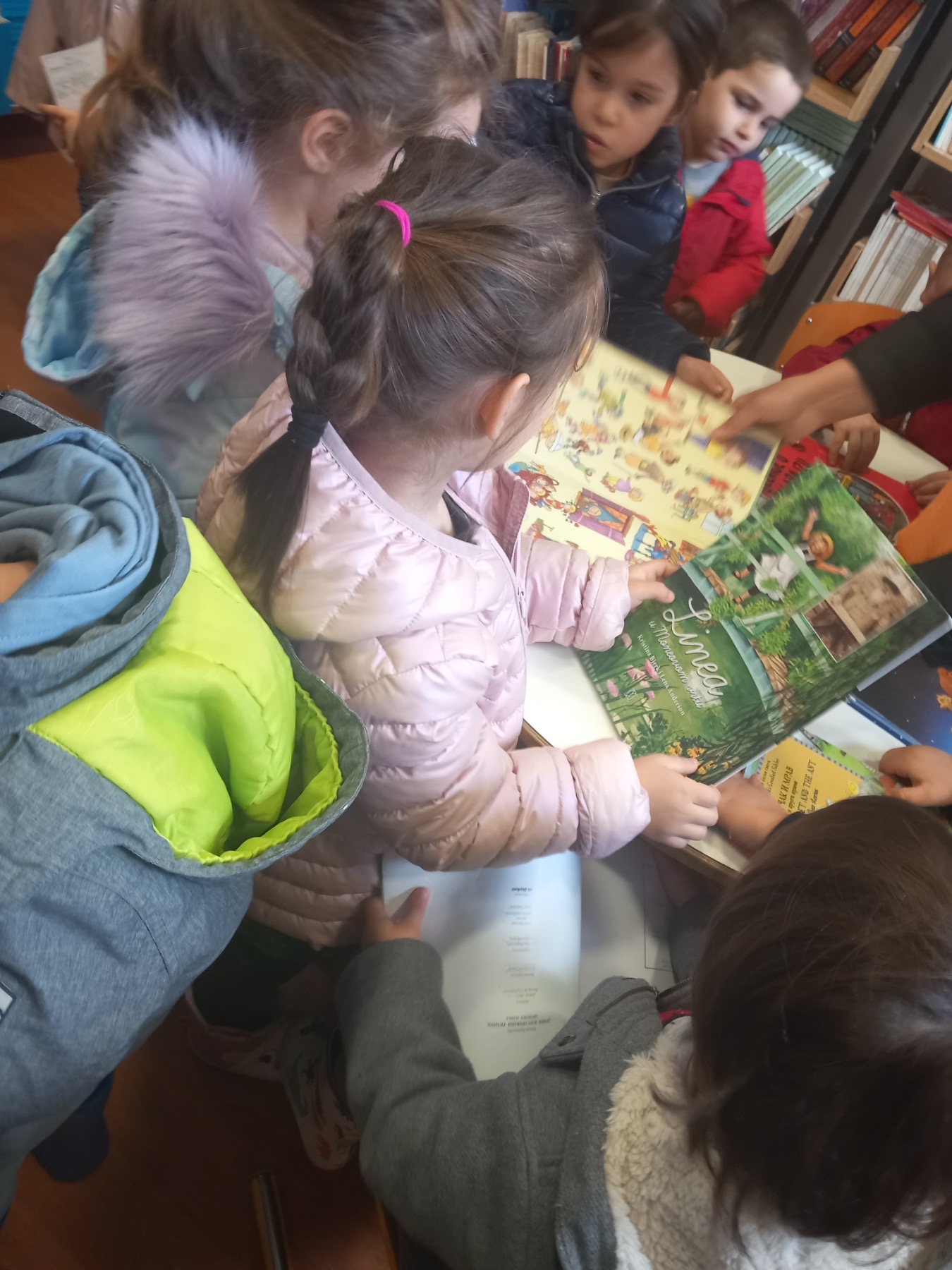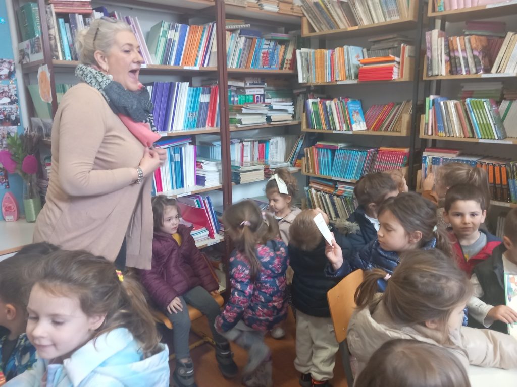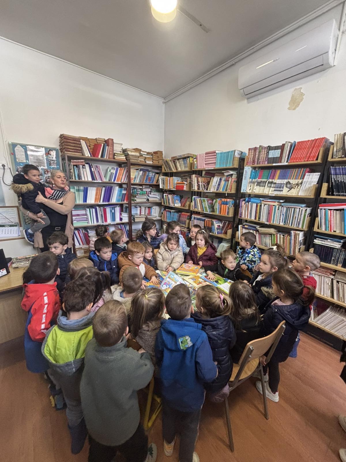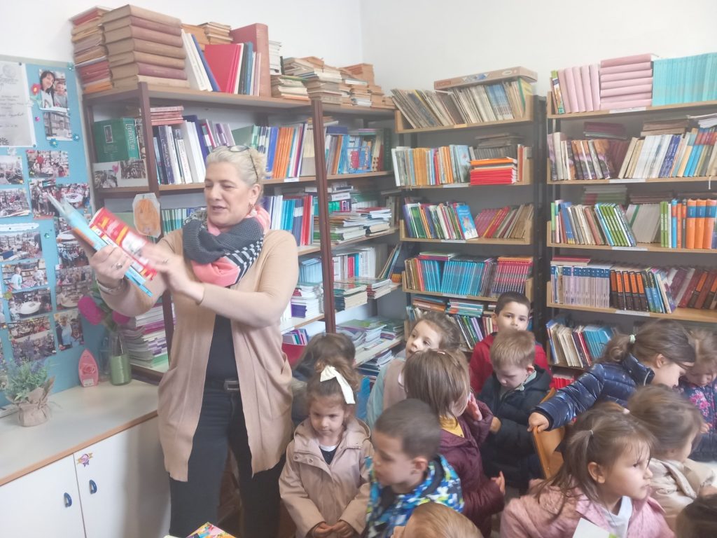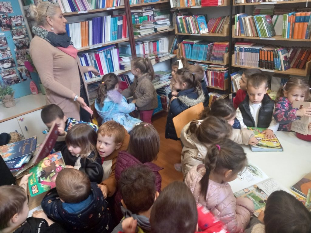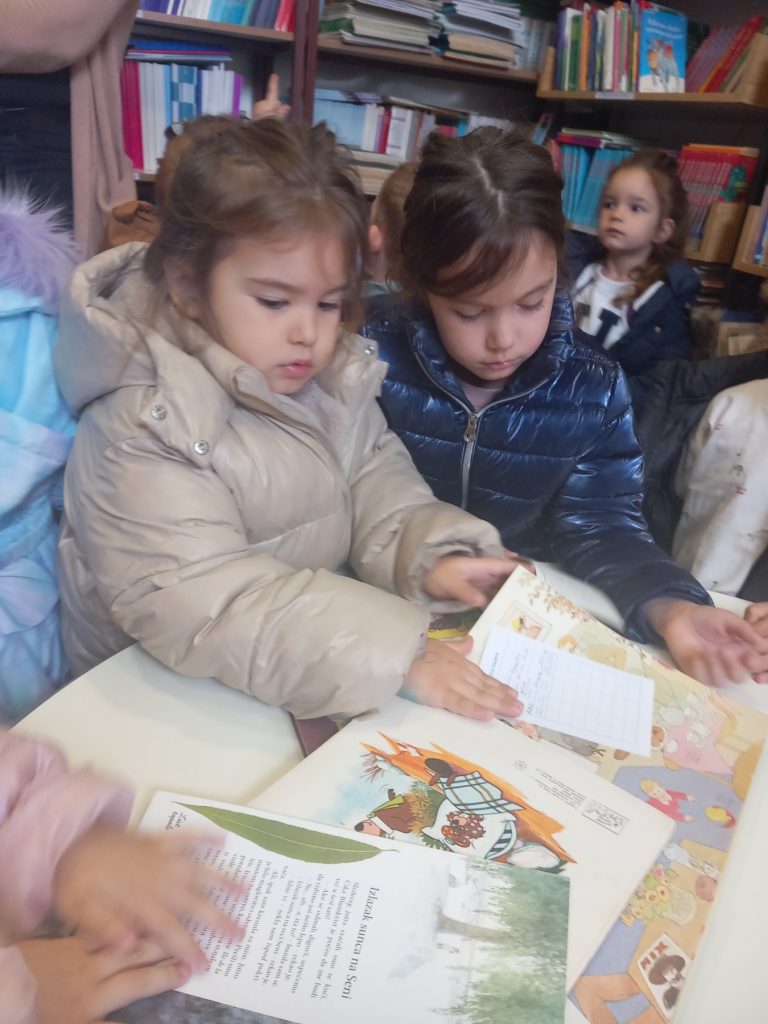 Posjeta je započela u školskoj biblioteci, gdje ih je srdačno dočekala naša bibliotekarka Ana. U toploj i podsticajnoj atmosferi, mališani su imali priliku da zavire u čarobni svijet knjiga – upoznali su šarene korice, listali bajke i razgovarali o omiljenim junacima. Mašta ih je odvela među priče o Maci Papučarici, Pinokiju, Snežani i sedam patuljaka, Kralju lavova i mnogim drugim likovima koji žive na stranicama knjiga i u dječijim srcima.
