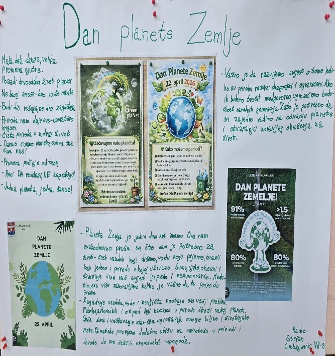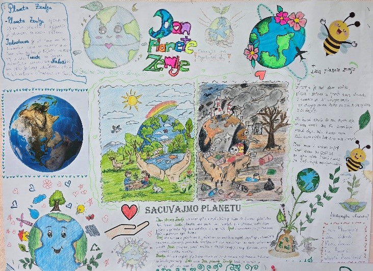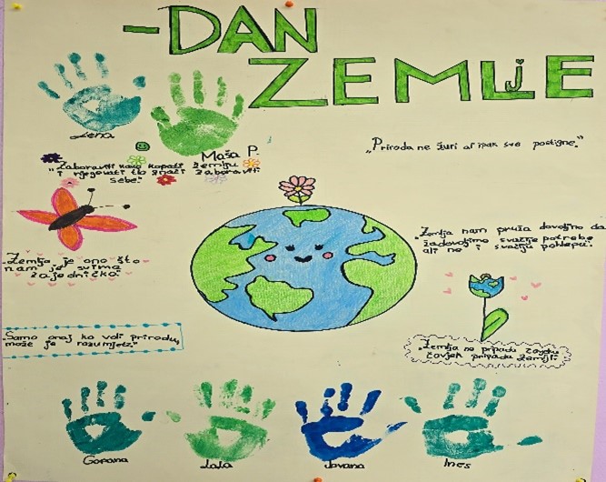 Danas u našoj školi obilježavamo Dan planete Zemlje, dan posvećen očuvanju prirode i podizanju svijesti o značaju zaštite naše okoline. Ovaj poseban dan nas podsjeća koliko je važno da brinemo o planeti na kojoj živimo, jer je Zemlja naš jedini dom.