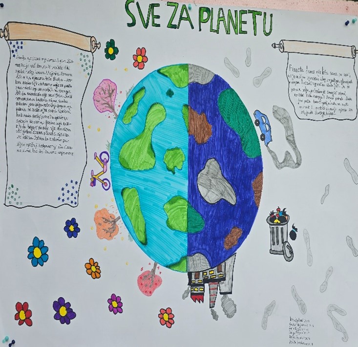 Učenici šestog i sedmog razreda su se posebno potrudili i pripremili zanimljive i edukativne panoe. Na njima su prikazali različite teme vezane za zaštitu životne sredine, poput očuvanja šuma, zaštite životinja, smanjenja zagađenja i značaja reciklaže. Njihov rad pokazuje koliko su mladi svjesni problema sa kojima se naša planeta suočava, ali i koliko žele da doprinesu njenom očuvanju.