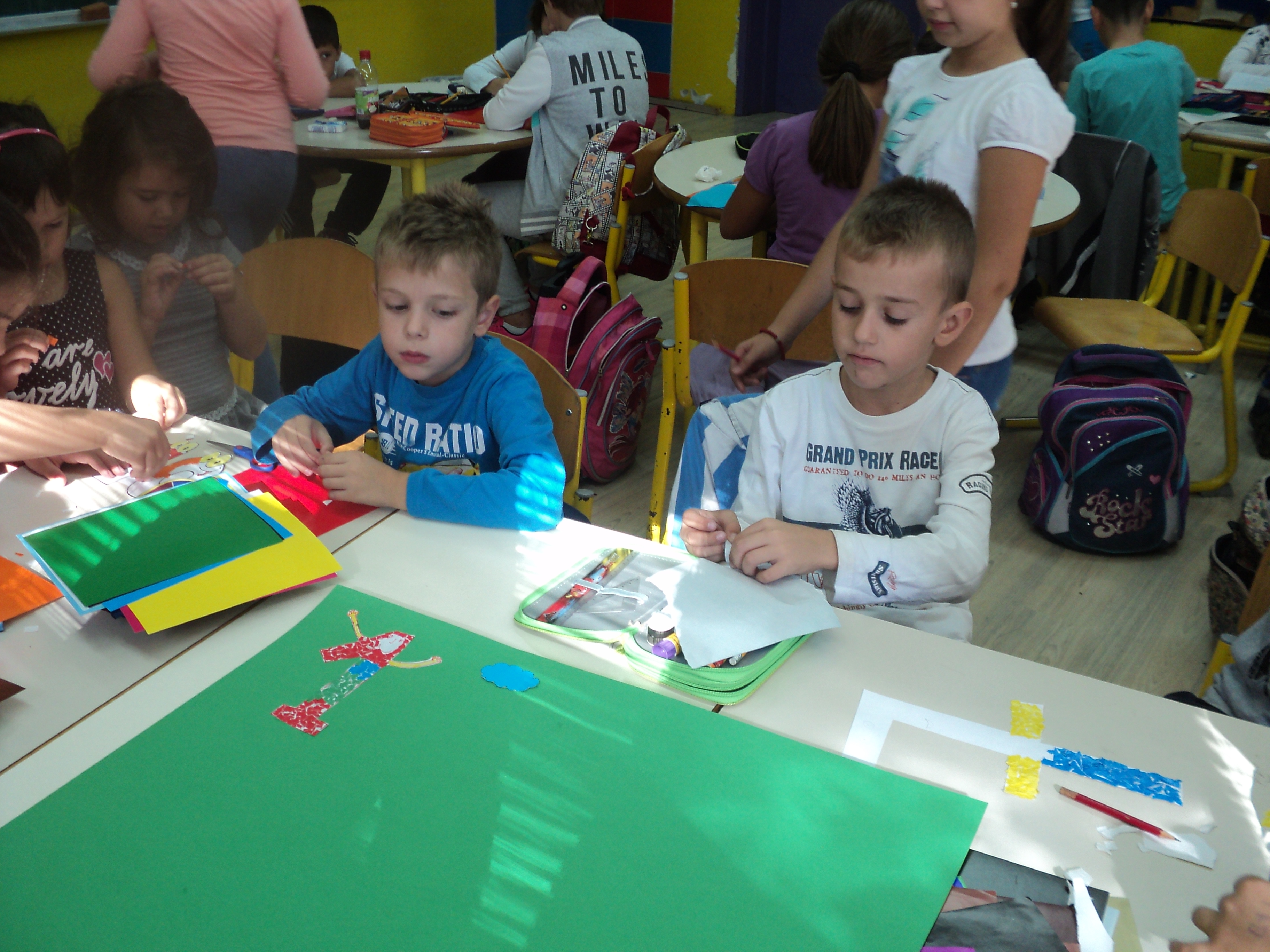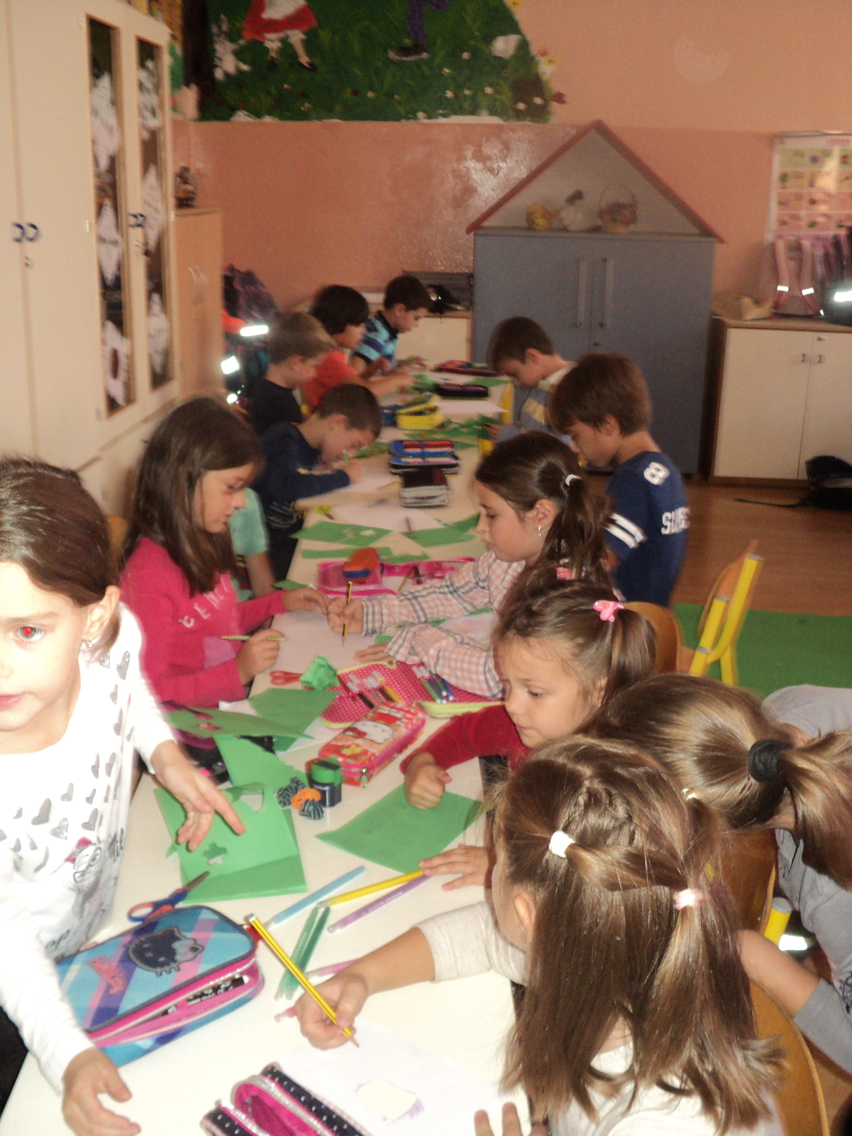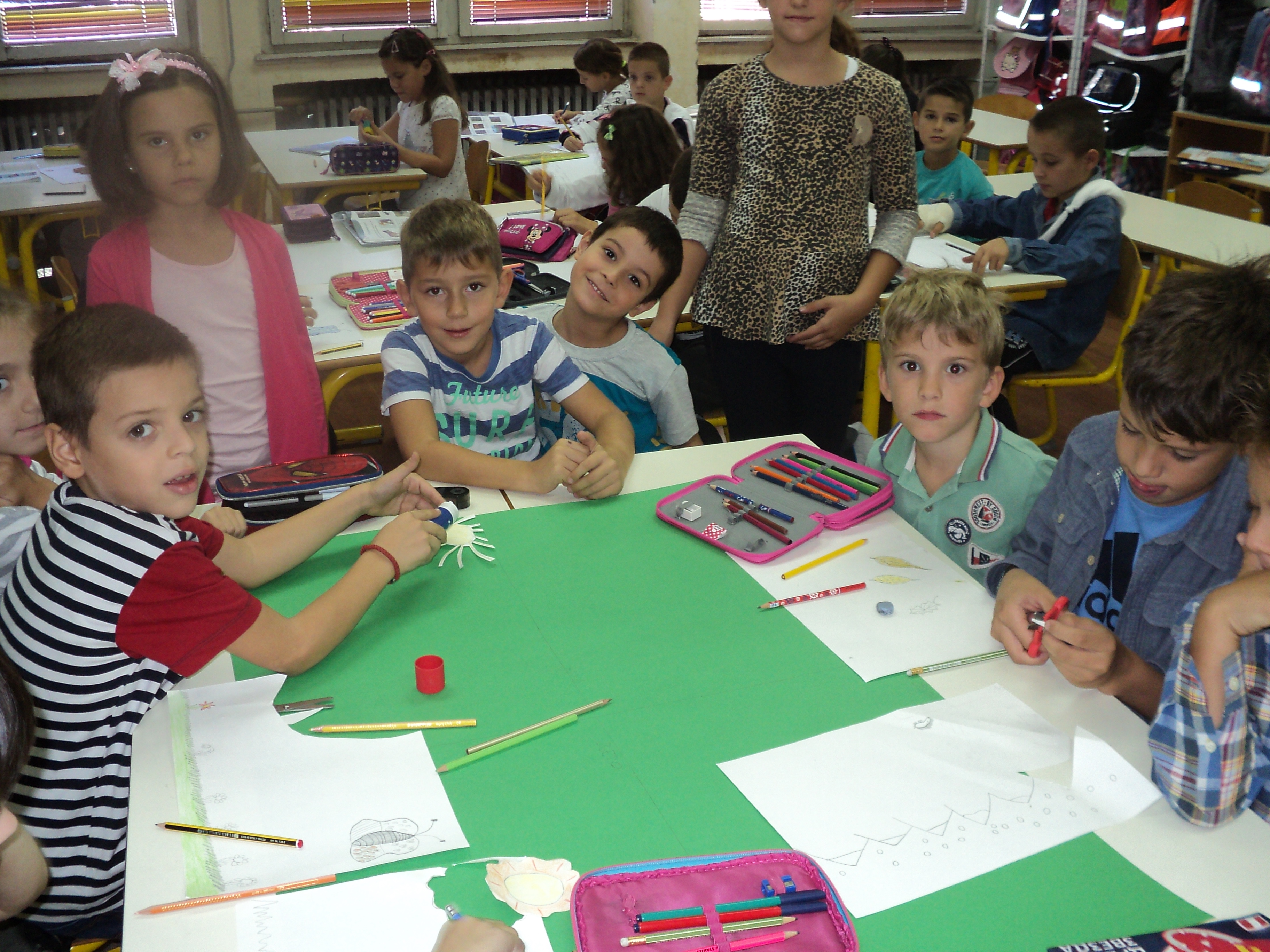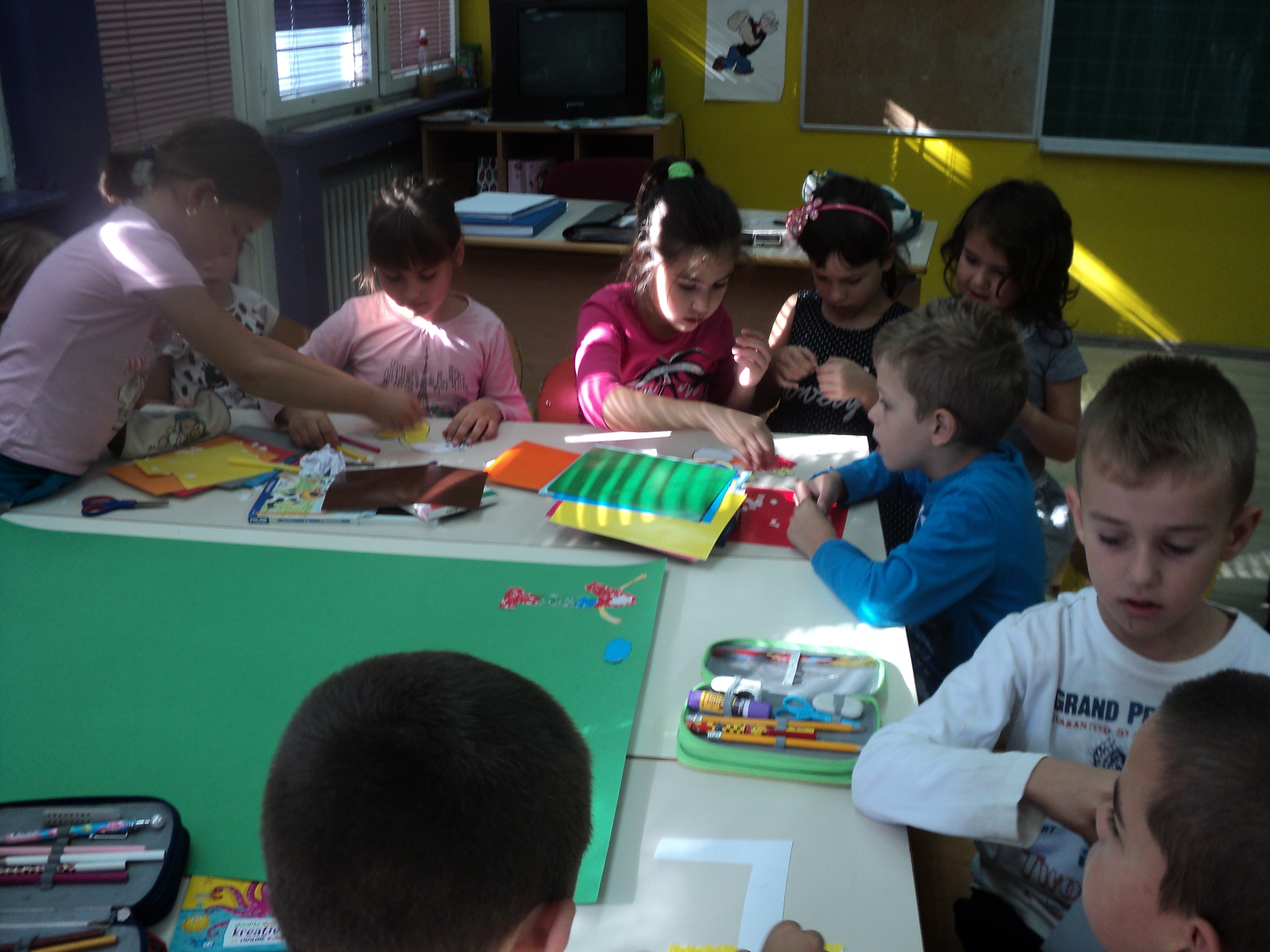 Drugi dio aktivnosti, bio je posvećen druženju sa našim najmlađim učenicima. Učenici I razreda koji borave u Produženom boravku, bili su gosti u našim učionicama. Kroz zajednički rad, nastali su predivni plakati o Lijepom ponašanju, Igri brojeva, Slovograd, Svijet bajki i Kroz godišnja doba, koji će krasiti učionicu Produženog boravka i biti podsjetnik na ovo lijepo druženje.