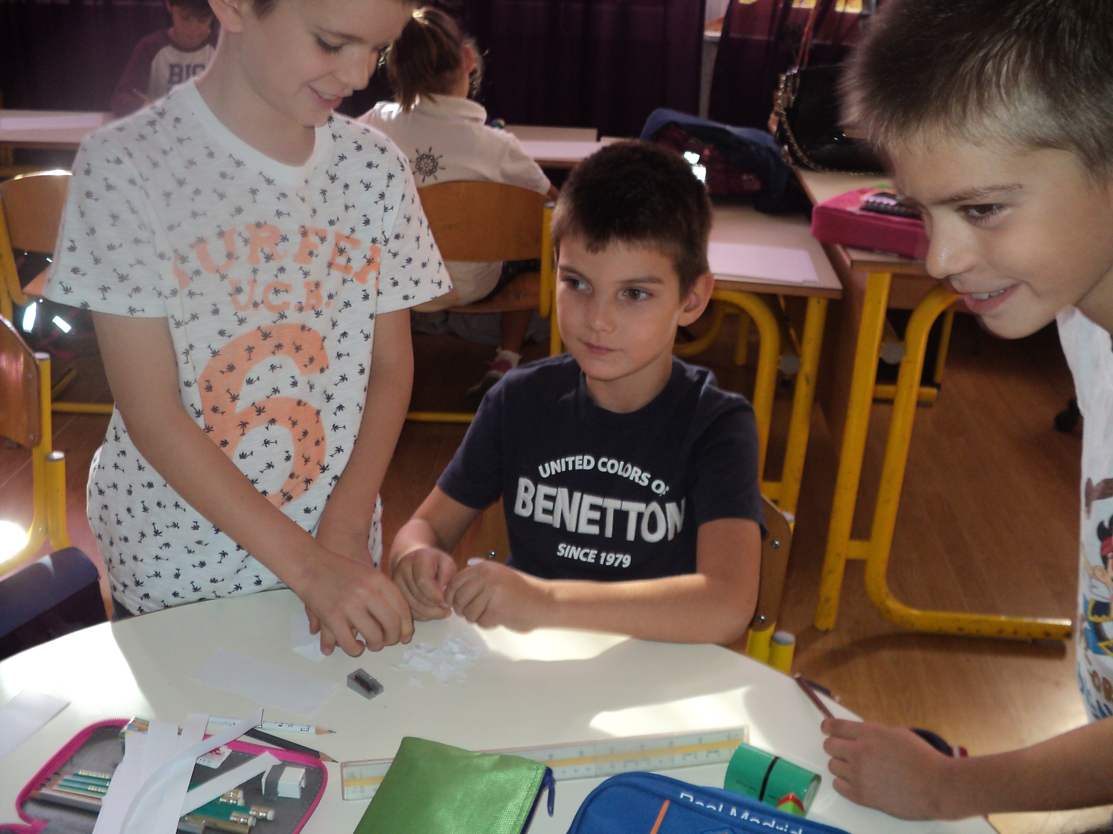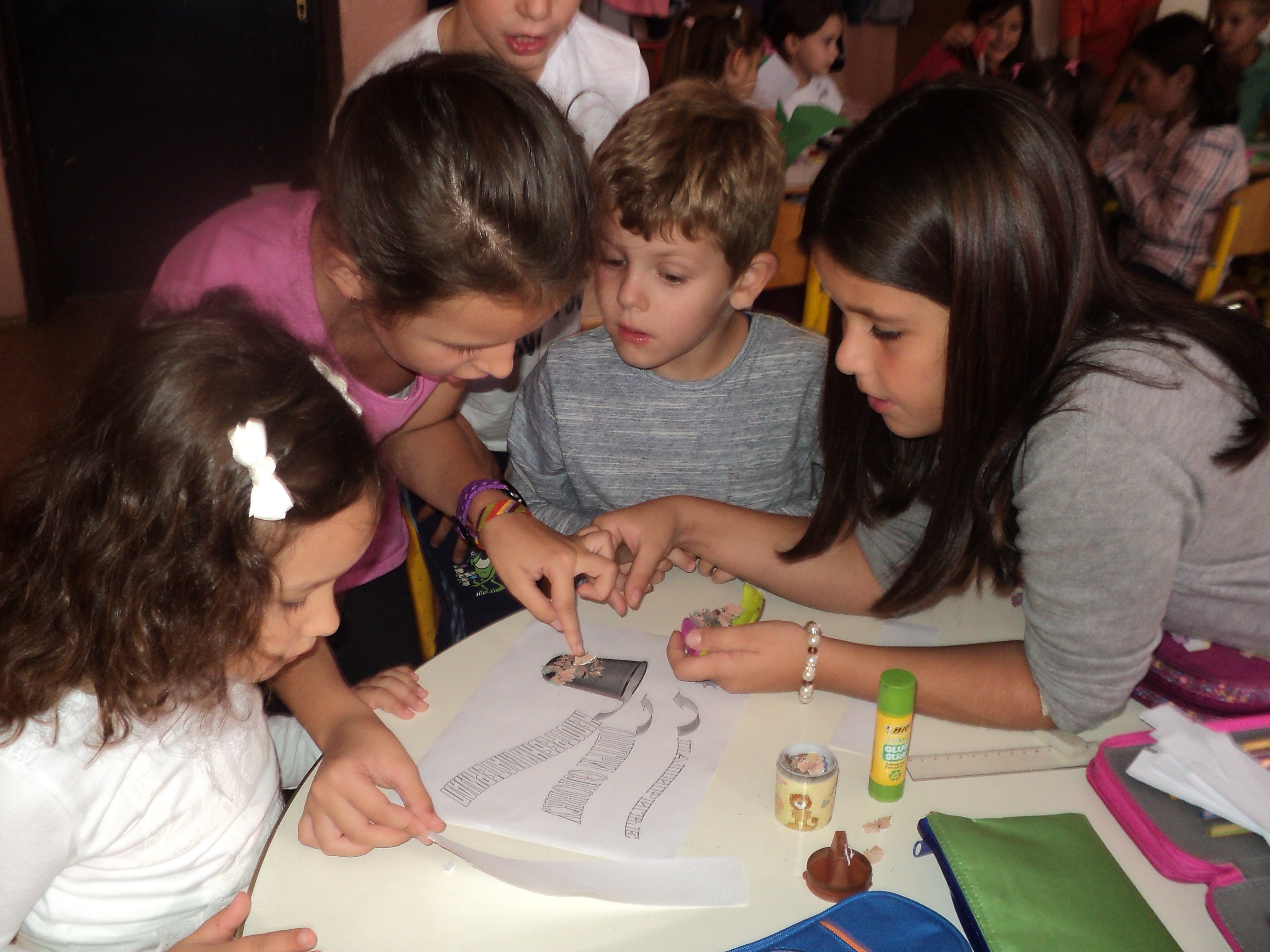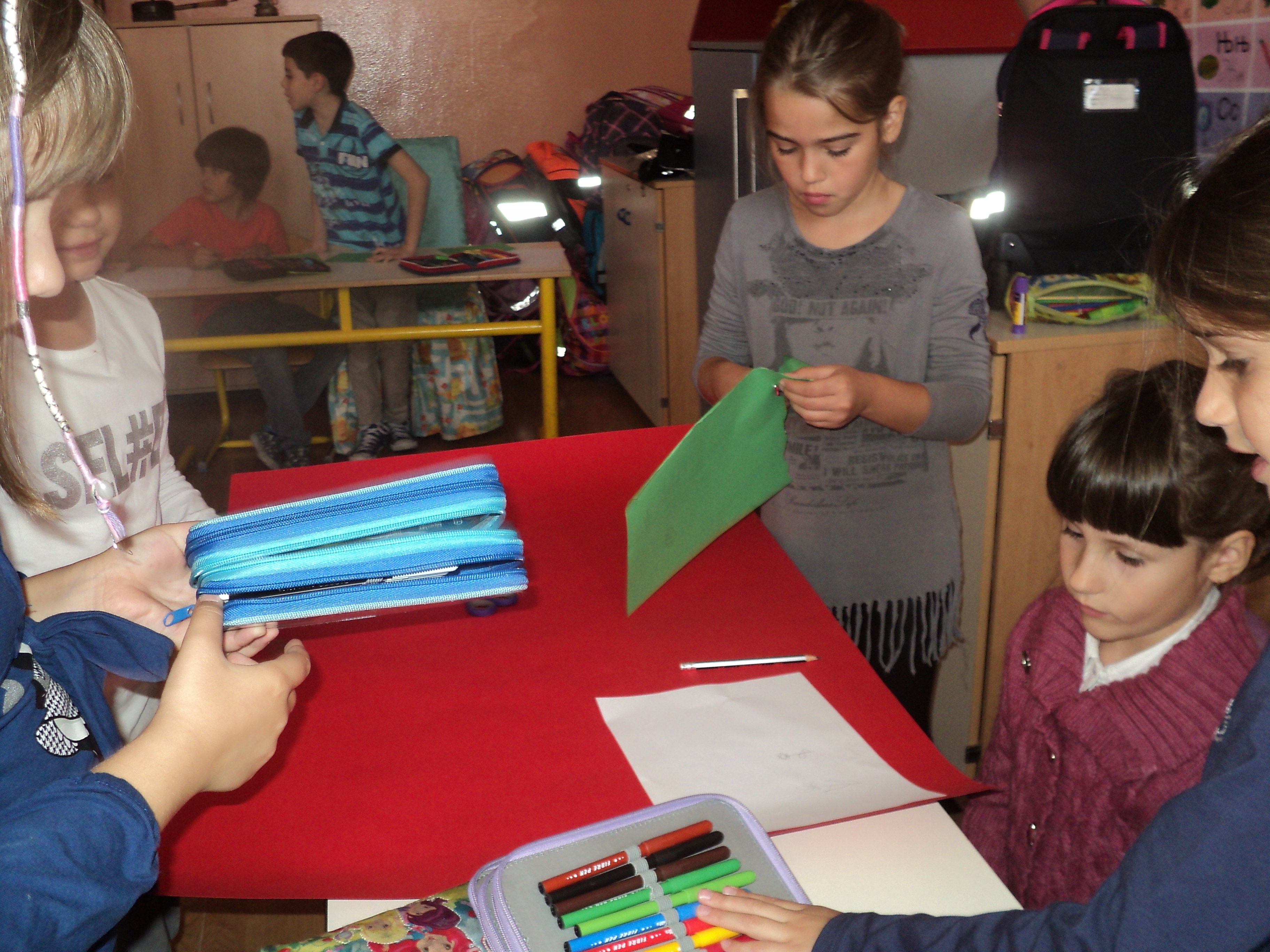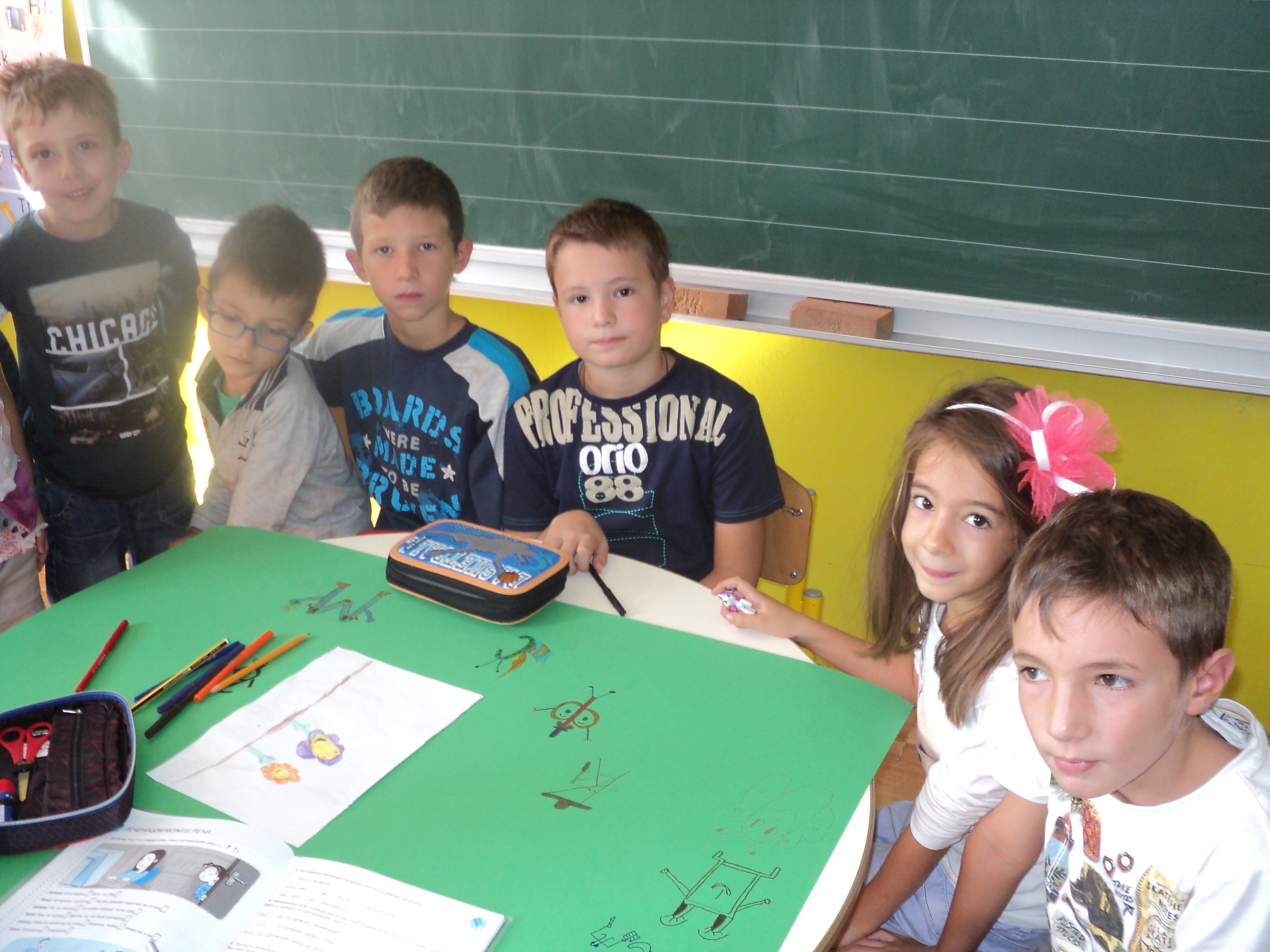 Drugi dio aktivnosti, bio je posvećen druženju sa našim najmlađim učenicima. Učenici I razreda koji borave u Produženom boravku, bili su gosti u našim učionicama. Kroz zajednički rad, nastali su predivni plakati o Lijepom ponašanju, Igri brojeva, Slovograd, Svijet bajki i Kroz godišnja doba, koji će krasiti učionicu Produženog boravka i biti podsjetnik na ovo lijepo druženje.