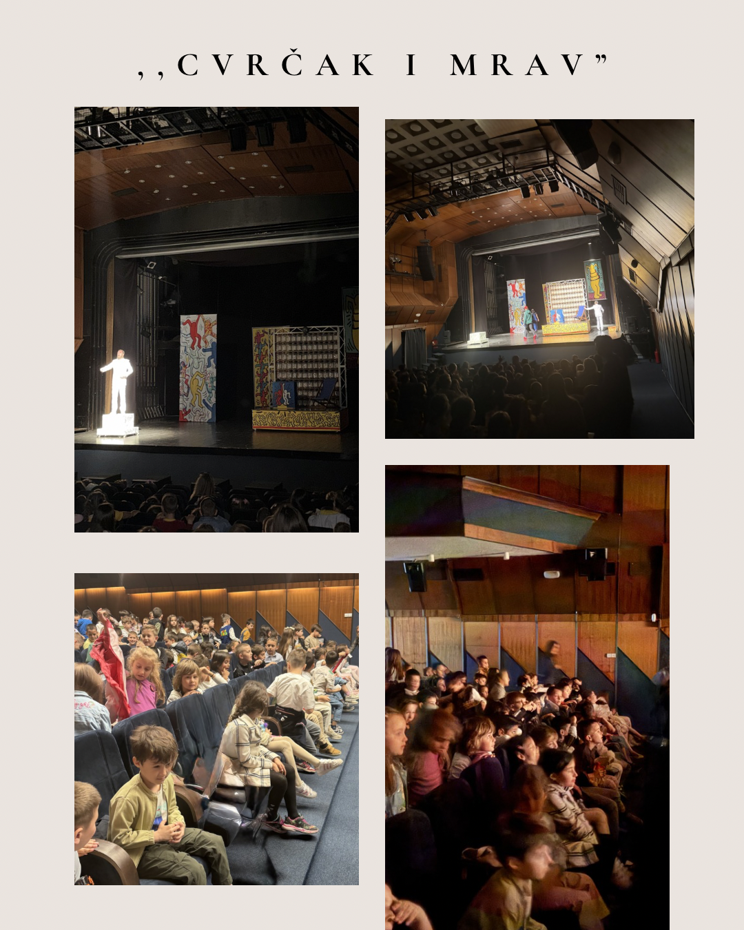 Ova zanimljiva i poučna priča oduševila je mališane živopisnom scenografijom, muzikom i sjajnom glumom. Kroz avanture vrijednog mrava i bezbrižnog cvrčka, učenici su na zabavan način naučili važne životne lekcije o radu, odgovornosti i međusobnom pomaganju.