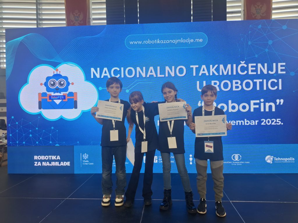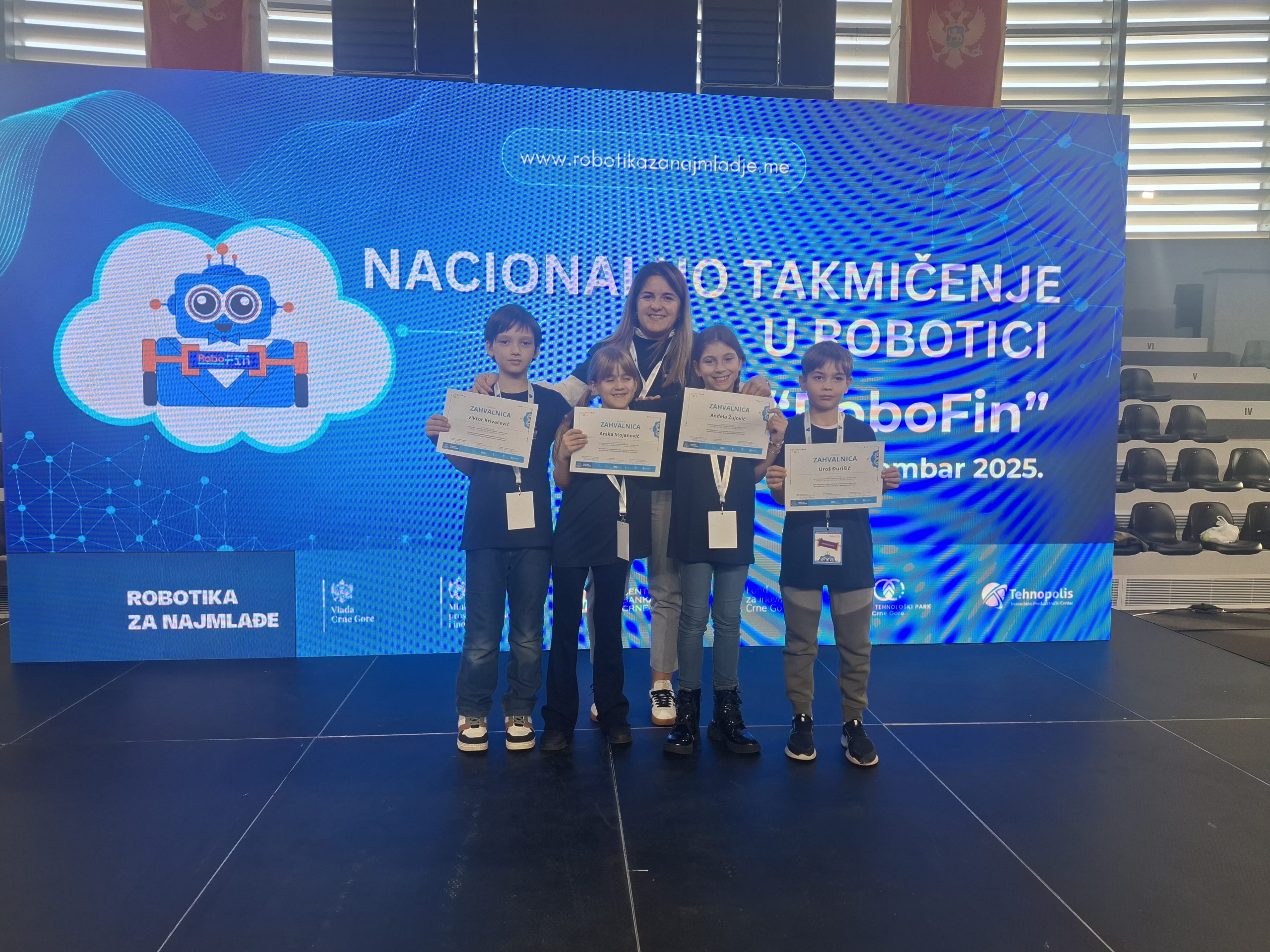 Učenici trećeg razreda Anđela Žujović, Anika Stojanović, Uroš Đurišić i Viktor Krivaćević učestvovali su 1. novembra na takmičenju iz robotike za najmlađe ,,RoboFin".