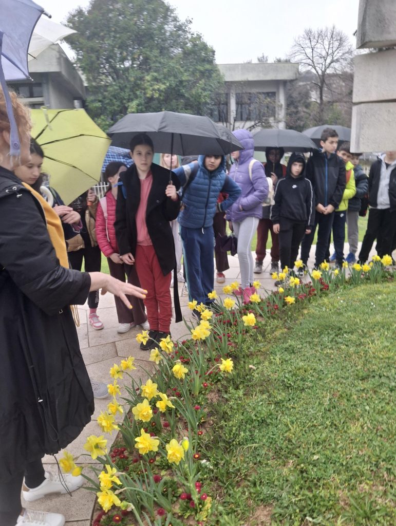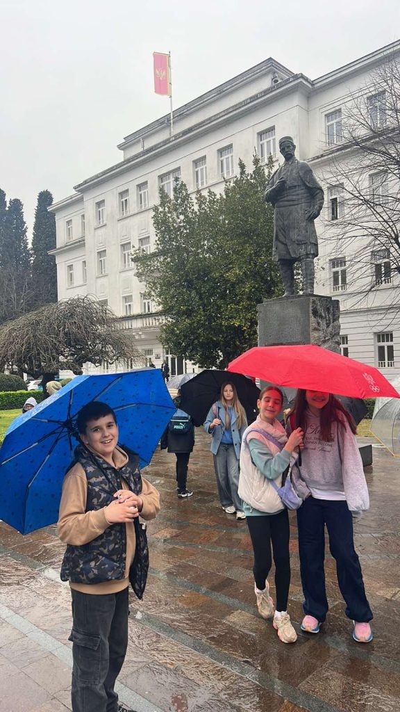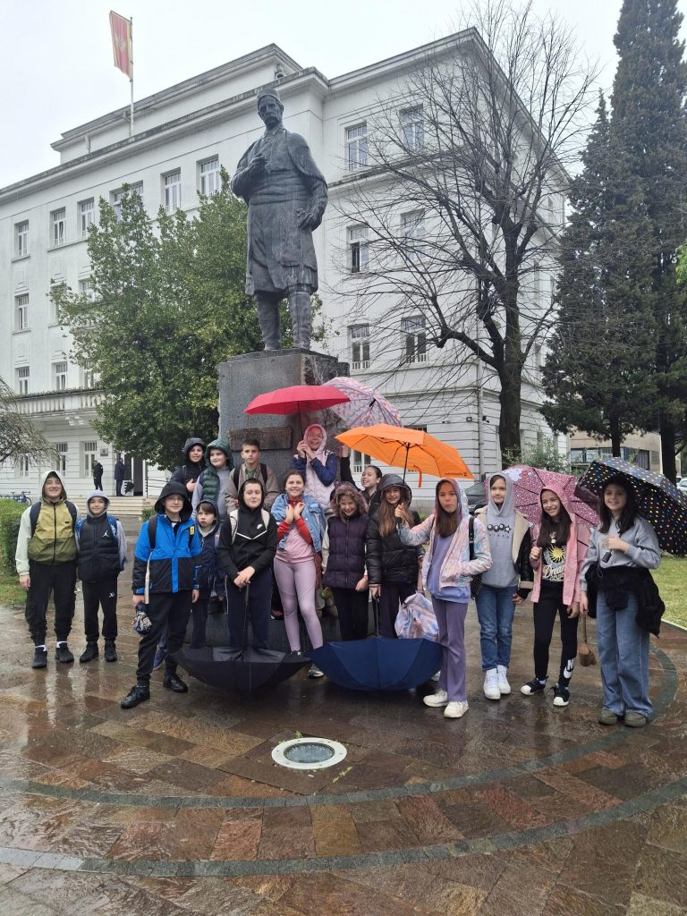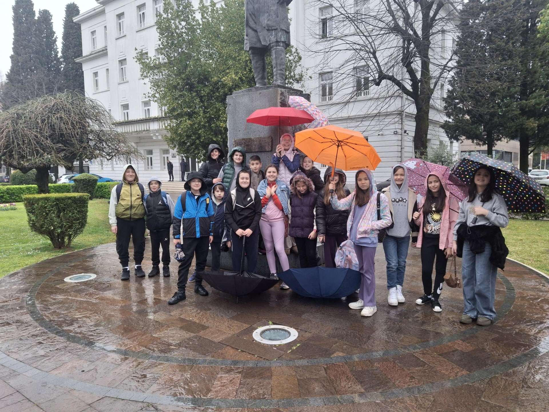 Iako nas je dočekalo sivo nebo i poneka kap kiše, družina petog razreda bila je spremna za avanturu kroz Mirkovu varoš. Uz kišobrane i dobro raspoloženje, krenuli smo u istraživanje srca Podgorice.