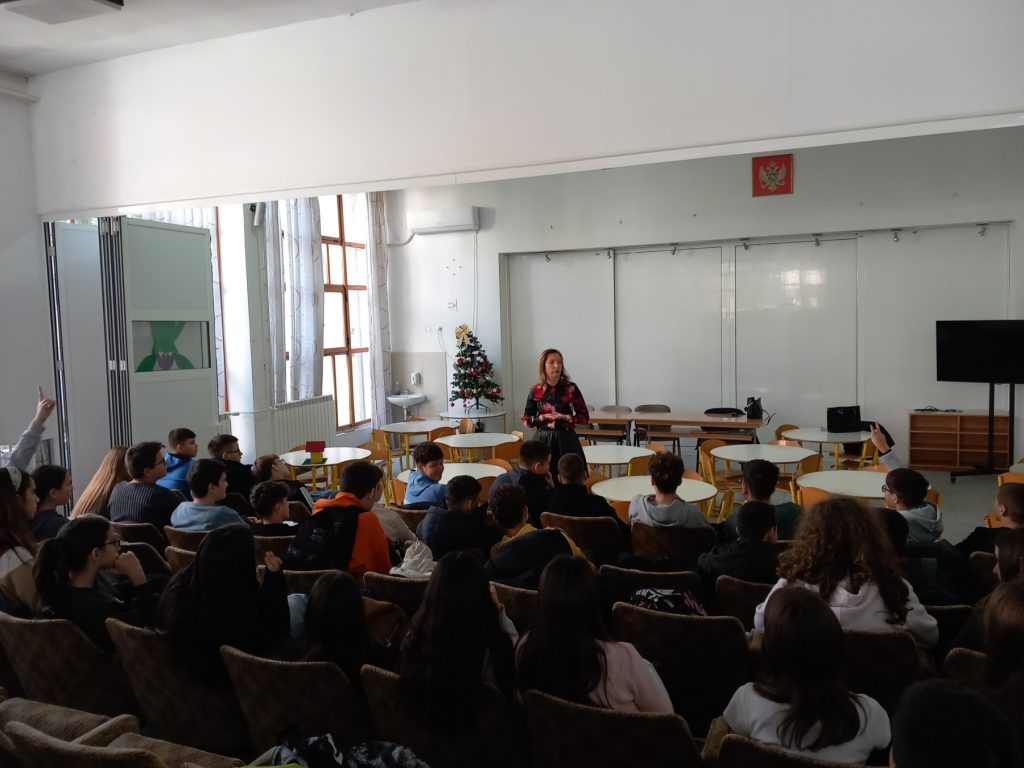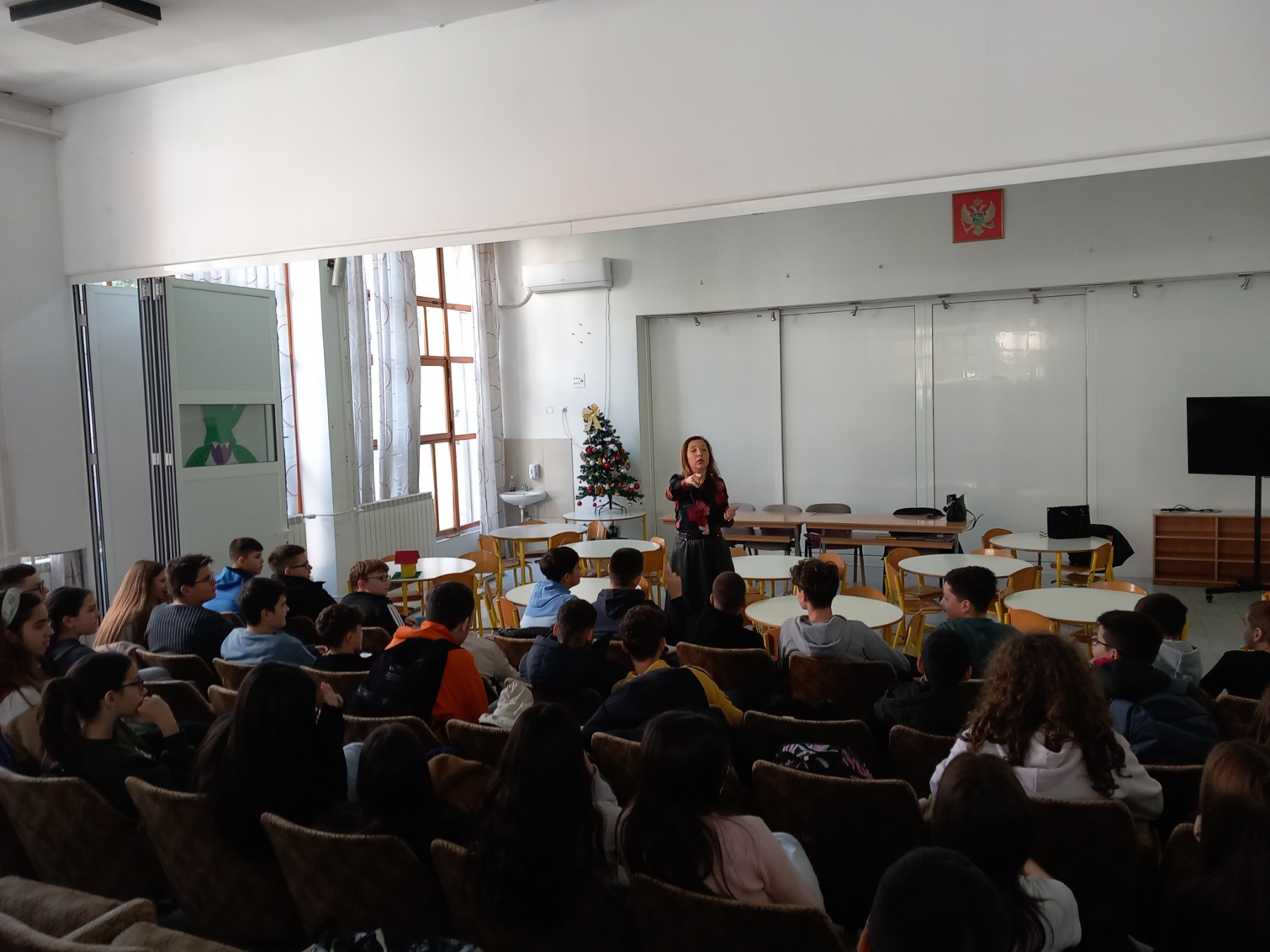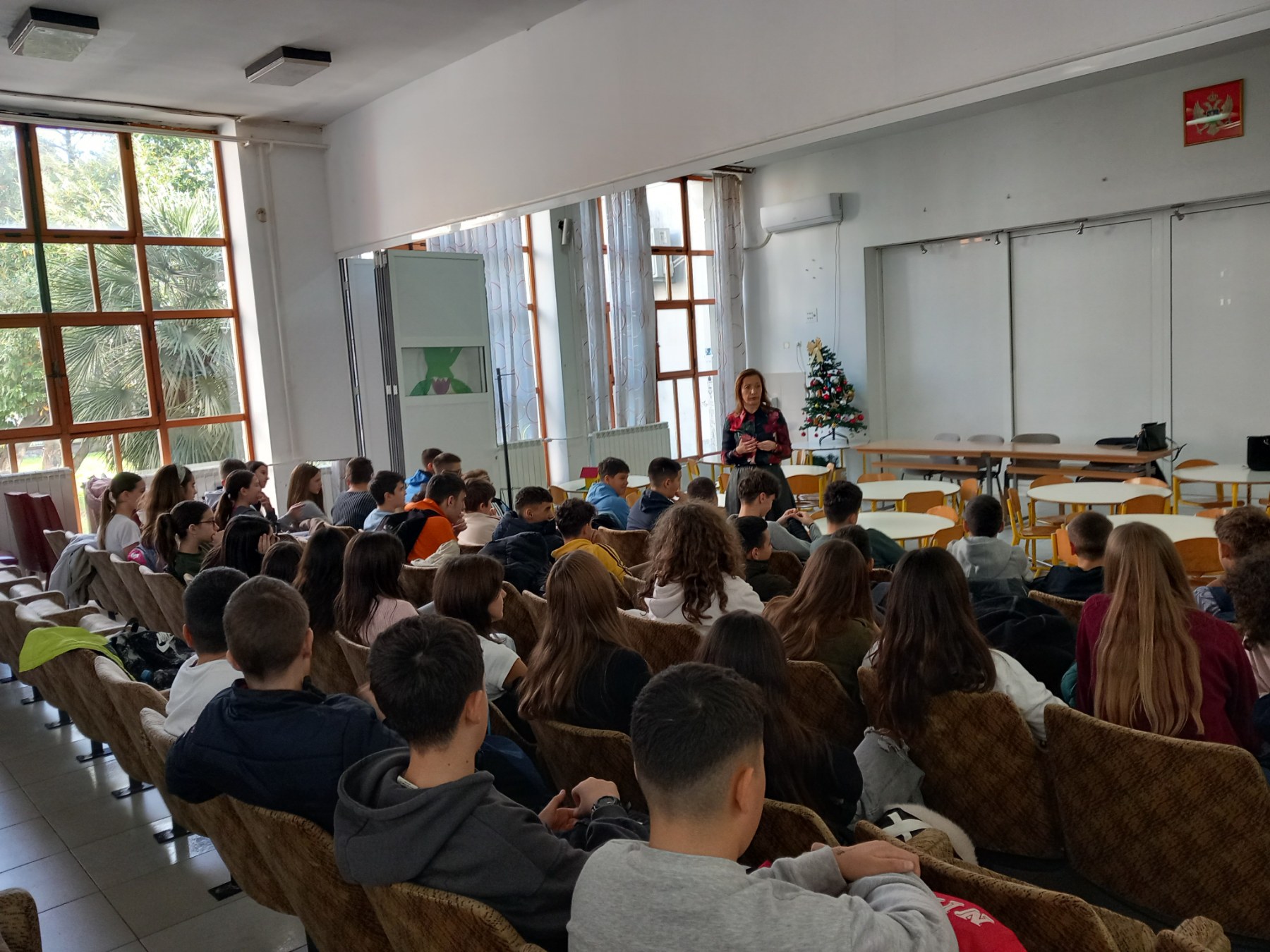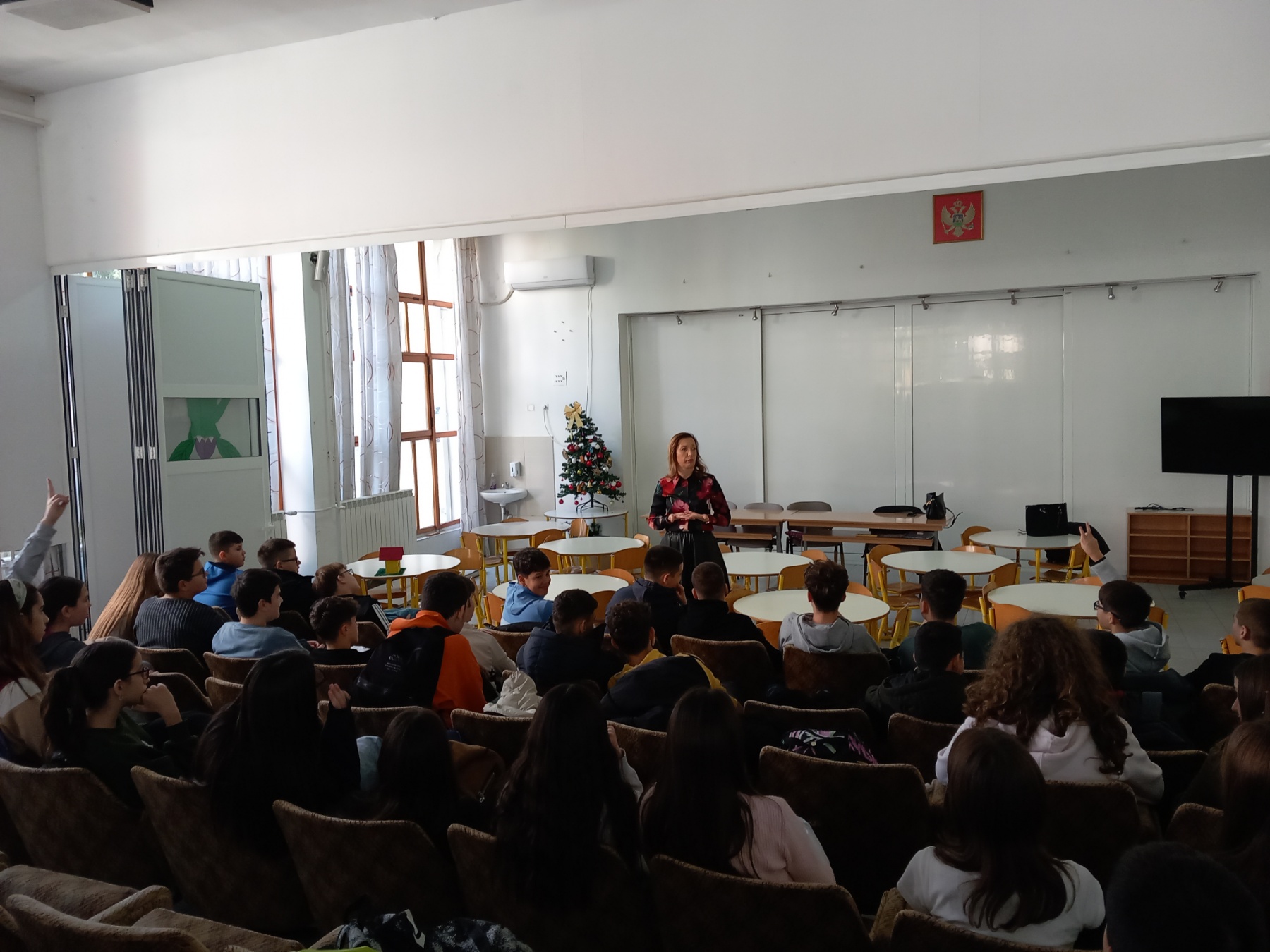 U okviru kontinuirane saradnje i realizacije preventivnih programa u školi, održano je stručno predavanje za učenike VIII razreda na temu polno prenosivih bolesti. Predavanje je realizovala dr Željka Ralević, predstavnica Tima Savjetovališta za mlade Doma zdravlja Podgorica.