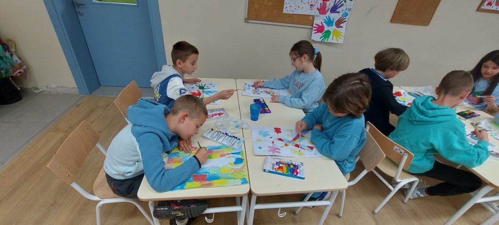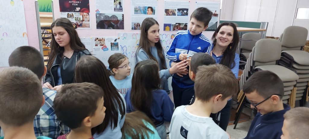 Obilježavajući Svjetski dan autizma, učenici III-3 razreda su s mnogo ljubavi, pažnje i razumijevanja posvetili ovaj dan svom drugu Jovanu Đinoviću. Djeca su obukla plavu odjeću kao simbol podrške, crtala srca i slagalicu „ruka u ruci” kao simbol različitosti i prihvatanja, pravila šarene otiske dlanova i ispisivala poruke ohrabrenja. Na taj način poslali su snažnu poruku prihvatanja, podrške i prijateljstva prema drugu kojeg neizmjerno vole.