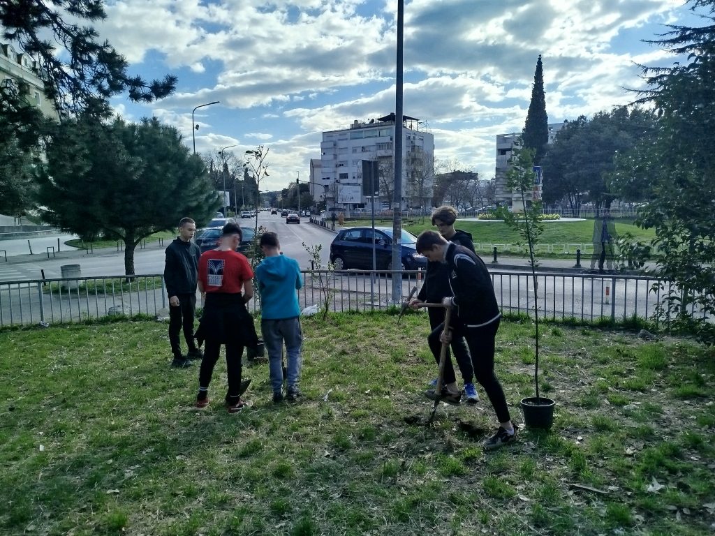 Učenici/ce članovi sekcije Mladi gorani su učestvovali u aktivnostima sadnje drveća u školskom dvorištu i dvorištu vrtića ,,Pčelica,,. Aktivnosti su realizovane u okviru projekta ,,Pozdrav proljeću,, u sradnji sa Udruženjem Gorana Podgorice. Ciljevi ove aktivnosti su uređenje školskog dvorišta, podizanje nivoa svijesti o značaju drveća i adaptacija na klimatske promjene.