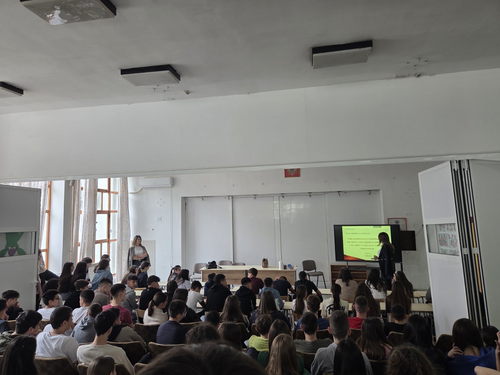 Dana 22. aprila 2026. godine, naša škola imala je čast da ugosti dr Sabinu Stanić. Učenici osmog razreda, u pratnji svojih nastavnika, prisustvovali su veoma poučnom i značajnom predavanju o prevenciji upotrebe alkohola i duvanskih proizvoda.