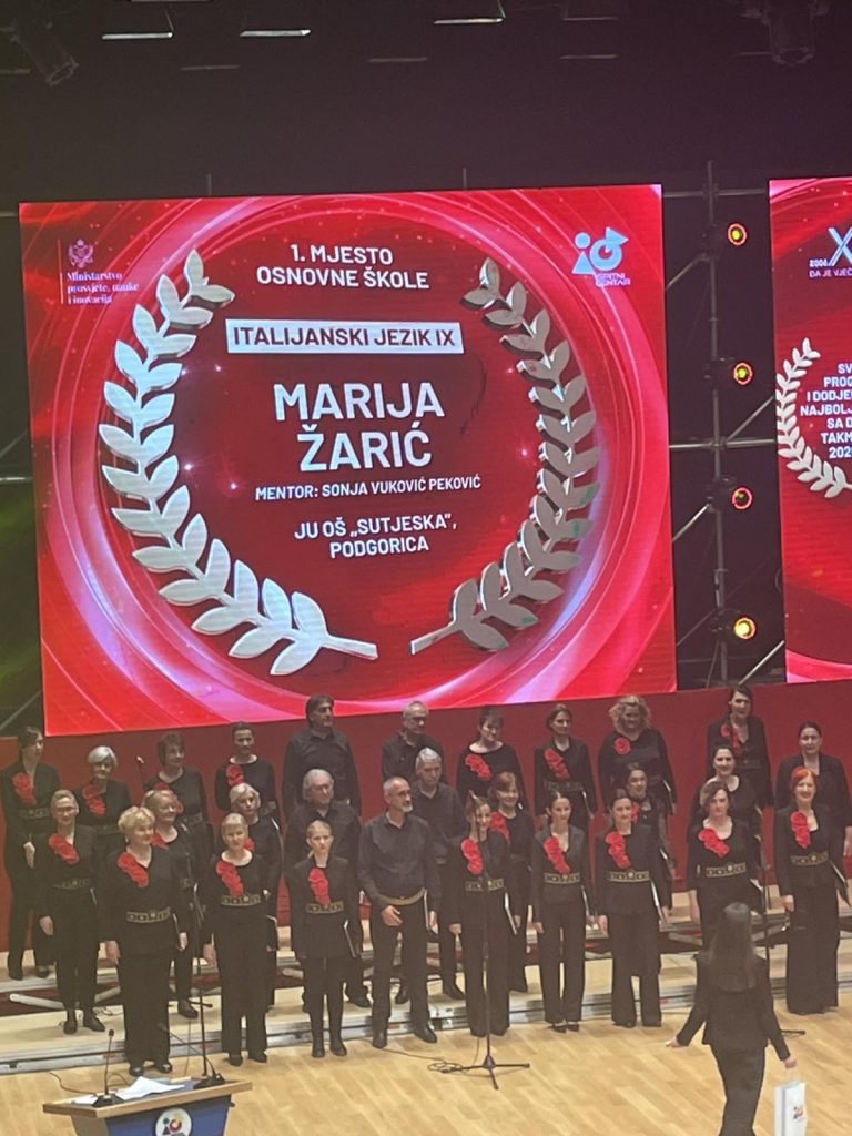 Naša škola ostvarila je izuzetan uspjeh osvojivši prvo mjesto iz italijanskog jezika. Učenica Marija Zarić (IX-4) osvojila je impresivnih 119 od mogućih 120 bodova, pod mentorstvom nastavnice Sonje Vuković Peković.